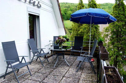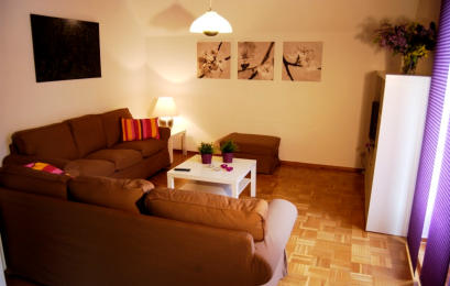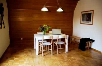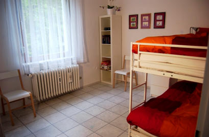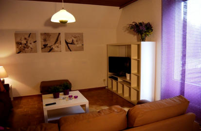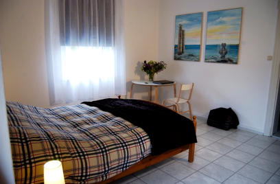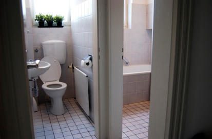 de eetkamer, de badkamer, het toilet, de twee slaapkamers en de twee balkons, waarvan een overdekt.